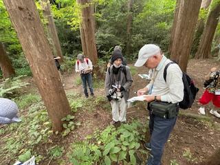 ●6/8(日) 生田緑地観察会 「シダ植物」シダ植物班 (大貫、島津、杉崎、園田、田村) 菖蒲池〜東口 参加者 12名