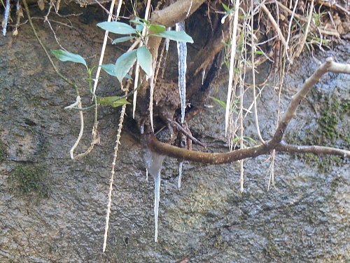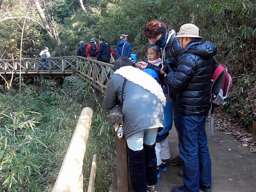 フユシャクの仲間のメスが園路の手すりの上に点々と出ていました。