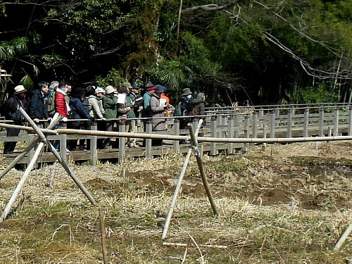 2日前の下見では、ウグイスカグラが2輪、オオイヌノフグリでさえ咲いていないという、普通に楽しめる観察対象が無い状態でしたので、どのような観察会にできるのか、不安を抱えてのスタートとなりました。