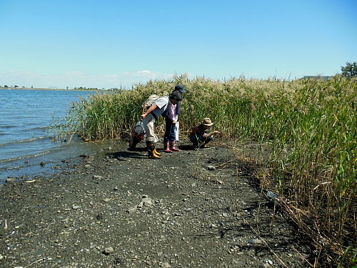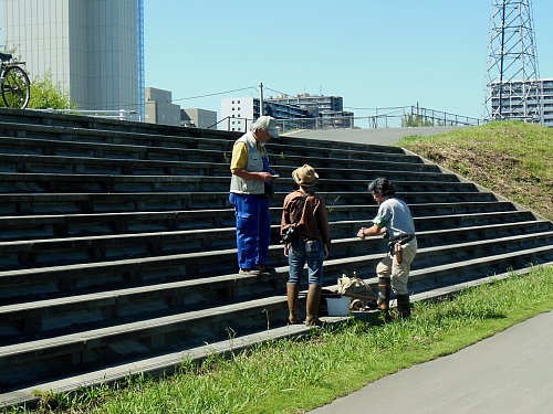 小さな干潟はカニ類の生息場所です。 土手から水際までの間を種類によって棲み分けをしているそうです。 ここは佐川さんから教えを受けました。 チゴガニ、コメツキガニ、クロベンケイガニ、アシハラガニなど干潟の生き物は魅力的です。 1995年以降、川崎市内のカニ類の記録が報告されていません。 NPO法人多摩川干潟ネットワークが大師河原で調査しておられるので、川崎の生物目録編集については、協働として編集に参加して戴きたいと思います。