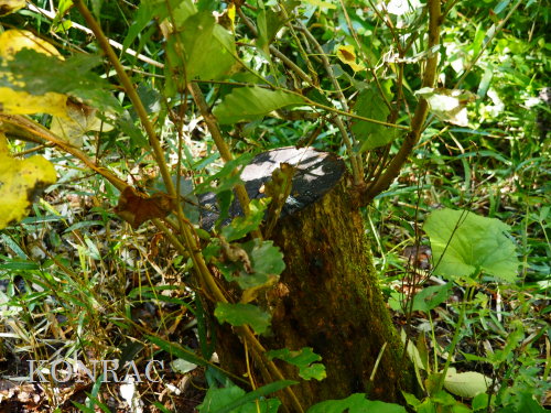 城山下谷戸の苗木畑に寄りました。 辺りは一面に低いアズマネザサが広がっていて、歩いて行ったら、突然、コジュケイが2羽、飛び立ちました。 2025/3/25(火)に伐採したクヌギが萌芽していましたが、アズマネザサやトキリマメ?のツルに被われていました。 周囲のアズマネザサを刈り、覆っていたトキリマメのツルを剥ぎ取りました。 萌芽枝は元気なので、萌芽更新できると思います。