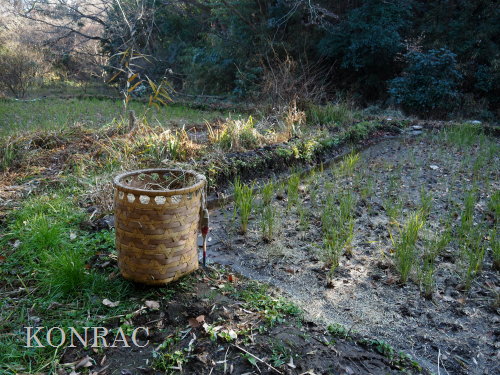 (上図)活動範囲図 上の田圃 脱穀時に廃棄するものとして背負い籠に入れておいた藁屑や籾殻などを背負って上の田圃に降りました。 先週、田圃の畦に溝を掘ったものの、水が広がった状態の確認はできませんでしたので、それを確認しました。 先週掘った溝には水が広がっていました。 しかし、水は田圃全域には広がってはいませんでした。 湛水はしていませんでしたが、運んできた背負い籠の中身を田圃の中に投げ入れました。