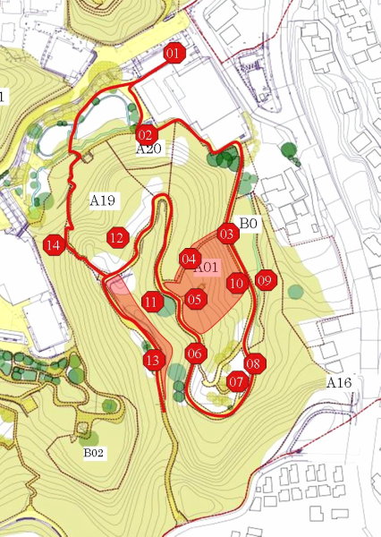 (上図)2025/10/11の野鳥の森の活動 この日の活動にとっては、生憎の雨となりましたが、参加予定者は集合時間前に、ビジターセンター1階に集まってくれました。 今回の里山倶楽部は、野鳥の森地区の植生管理計画と現実の植生の乖離について考えて、目標植生に向かって植生が変化しているのか、それとも異なる方向に変化しているのか、 実際に観察して、考えて、意見交換を行いました。 また、里山倶楽部としても年1回程度は、野鳥の森の一部の植生管理を行ってきたので、その活動の成果を観察することで、過去の活動の目的を実感を持って理解できたことと思います。 植生管理による植生の変化には時間がかかるので、なかなか実感することは難しいので、活動が頻繁ではない雑木林については、こうした活動も必要だと思いました。 @ビジターセンターを出発して、A植生管理区分A20の下端から、A20地区を観察しました。 ここは、2008年11月30日に、生田緑地植生管理協議会市民部会として、 行政3人を含む10人で、一面に純林状態になっていたアオキの除伐を行った斜面です。 野鳥の森地区の園路を進んで、閉鎖ゲートの手前BからCの辺りに、キバナアキギリの花が咲いているのが見えました。 ここは、今年、6月21日(土)の里山倶楽部で、キバナアキギリ保護のためのアズマネザサなどの草刈りを行いました。 そのキバナアキギリが開花盛期を迎えていました。 神奈川県植物誌によれば、県内では、丹沢、箱根、小仏山地とその周辺、三浦半島、多摩丘陵に分布しているとあります。 シソ科の多年草で、アキノタムラソウなどと同じ仲間で、市内では生田緑地の外、麻生区の一部でも見られるようです。 6月の活動にも参加していた4人は、キバナアキギリの周りのアズマネザサ刈りや草刈りを行っただけで、こんなに綺麗に咲いてくれているので、 嬉しく感じていたと思います。
